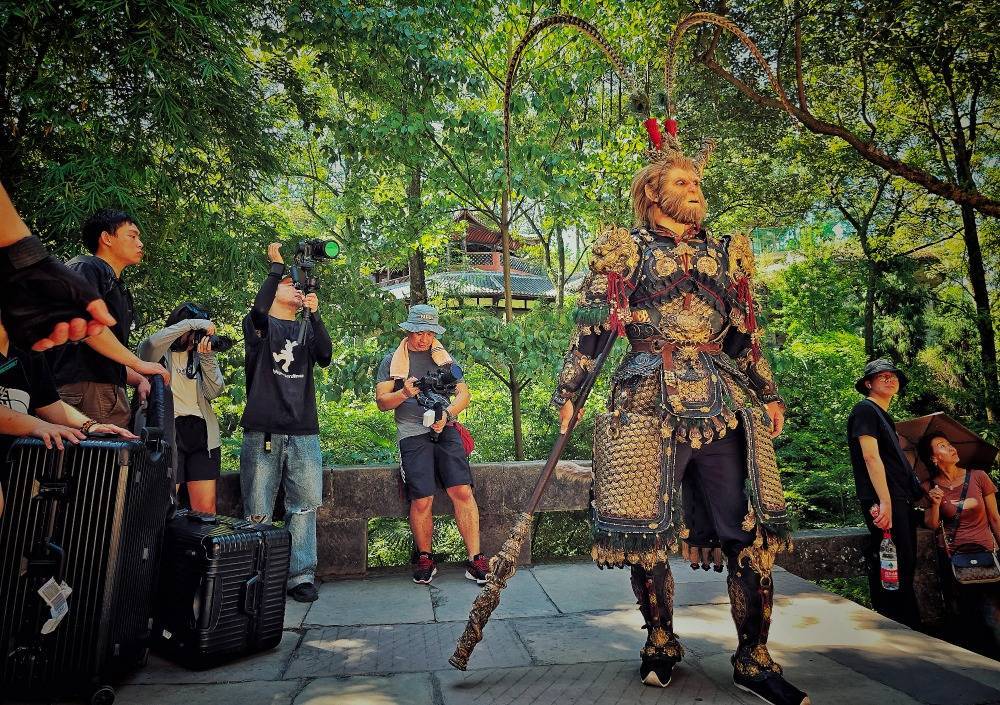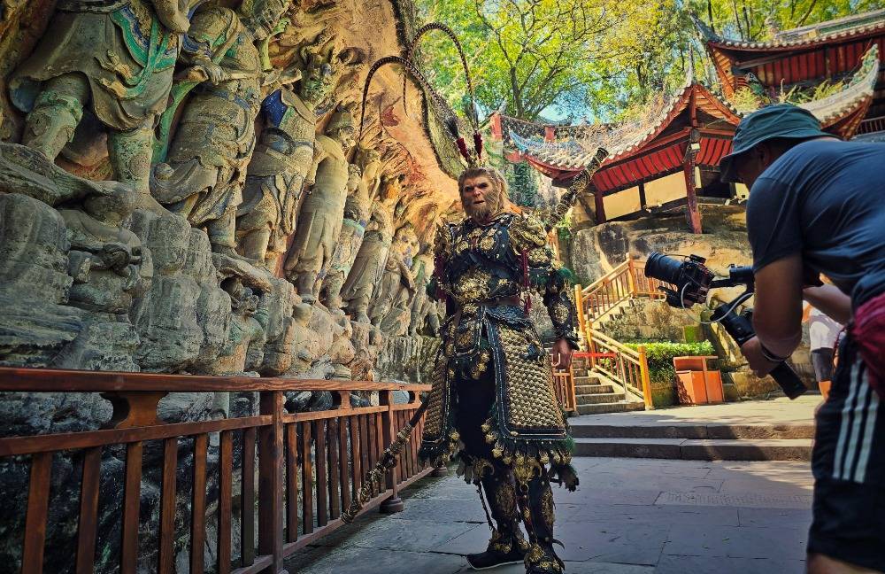 ▲8月25日,大足宝顶山景区,身着大圣套装的coser吸引了不少游客驻足拍摄。记者 崔力 摄