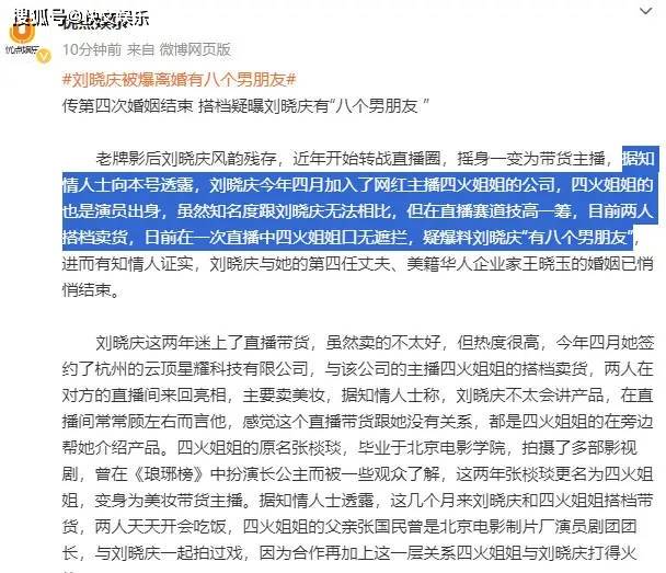 日前在一次直播中,四火姐姐口无遮拦,疑爆料刘晓庆“有八个男朋友”。