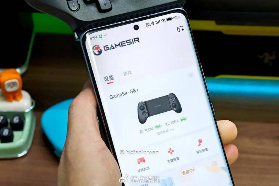 此外,盖世小鸡G8+的背面还有额外2枚可自定义按键,可以玩出更多组合操控。托板底侧中间安置了Type-C口和配对键,插线/操控时都不会影响夹持设备。