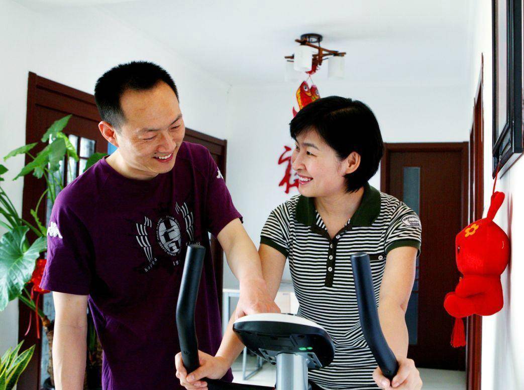 而每次刘洋回家时,张华也是协助妻子完成锻炼任务,为此,他还特意买了一辆运动自行车放在家里。下雪天的时候,别人都怕冷不敢出门,但张华还是陪着刘洋在雪地里散步。