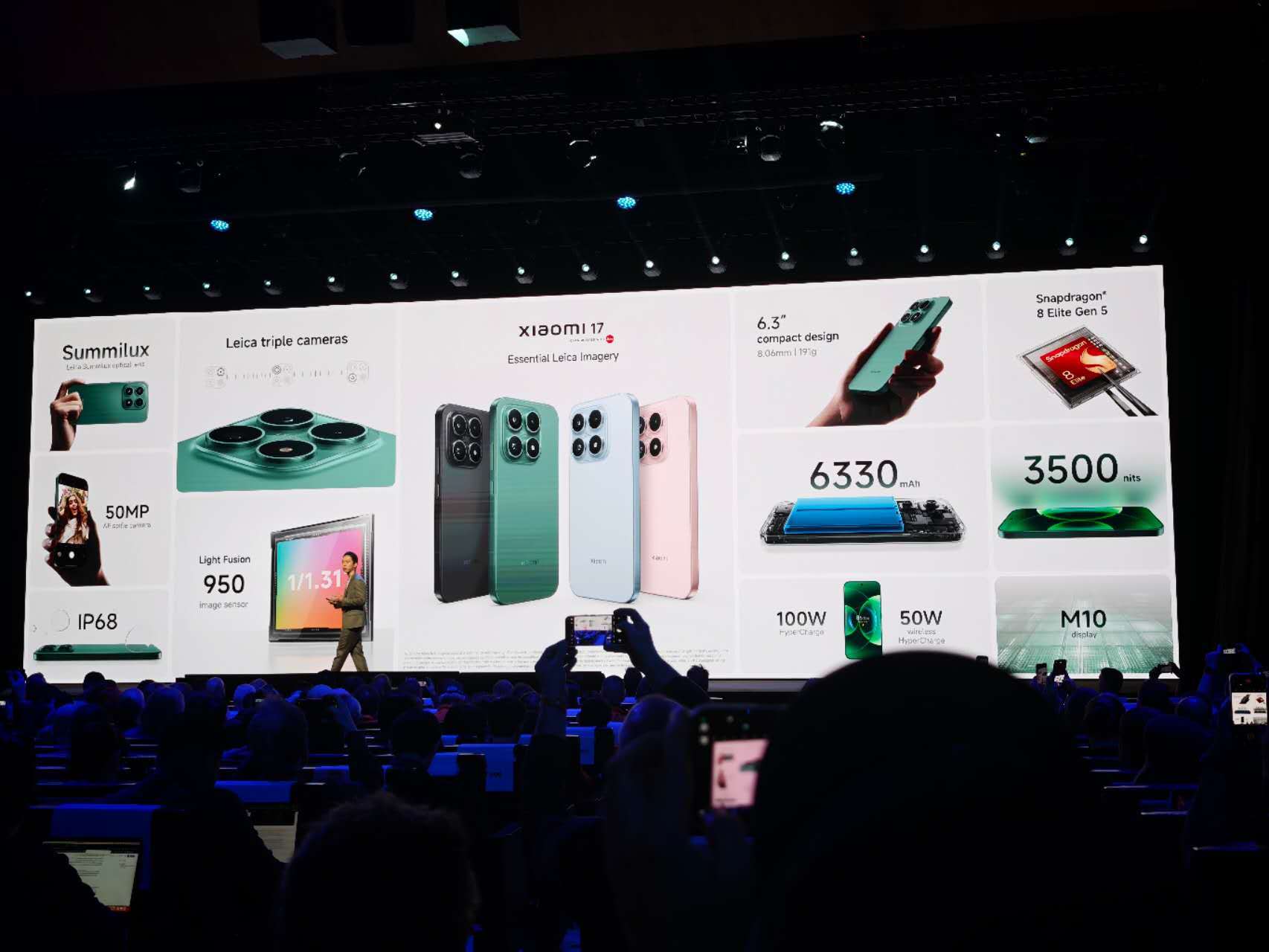 发布会首先推出小米17标准版,整体配置与国内版无明显差异。该设备搭载骁龙8Elite Gen5处理器,配备6.3寸显示屏,峰值亮度可达3500尼特,配备徕卡三摄系统,整机重量191克,支持IP68防尘防水,海外版电池容量为6330毫安时。该机12+256GB在欧洲市场的售价为999欧元,折合人民币约8098元。