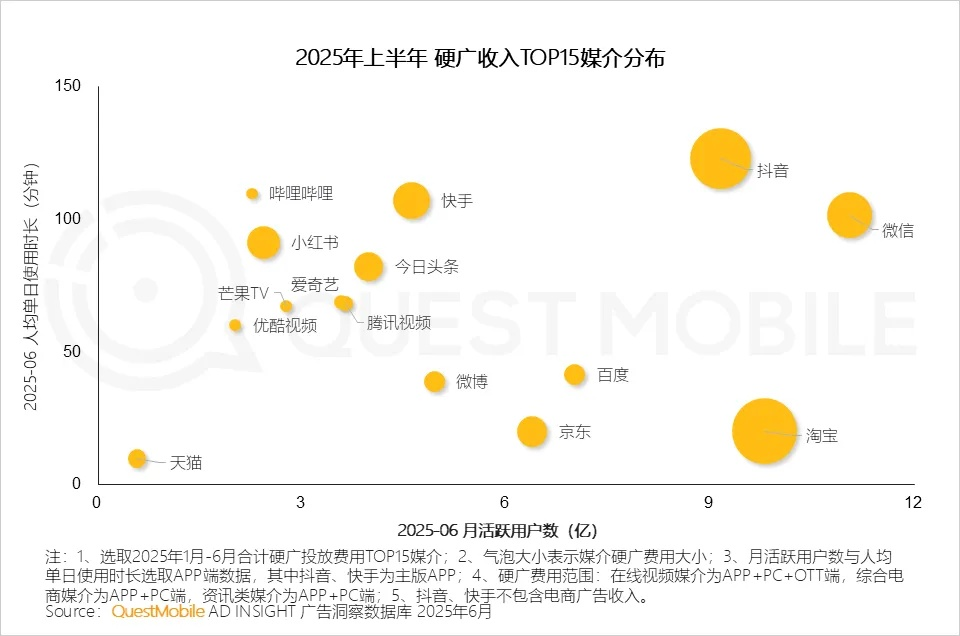 至少目前不能。据QuestMobile数据,2025年上半年,互联网硬广收入排行里,百度远远落后其他媒介平台。
