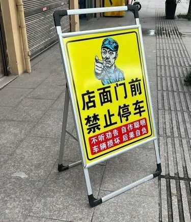 就像商家在门口贴个,「门口禁止停车,不然一把火烧了」。