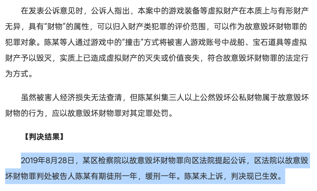 但这次判决有划时代意义,直接明确了网络游戏装备的性质,属于刑法中的财产范畴。
