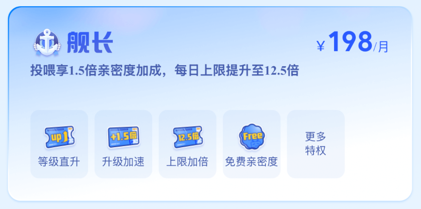 一个月 198 元,支付后就能在当月获得「舰长」徽章、弹幕颜色、头像框等专属特权。
