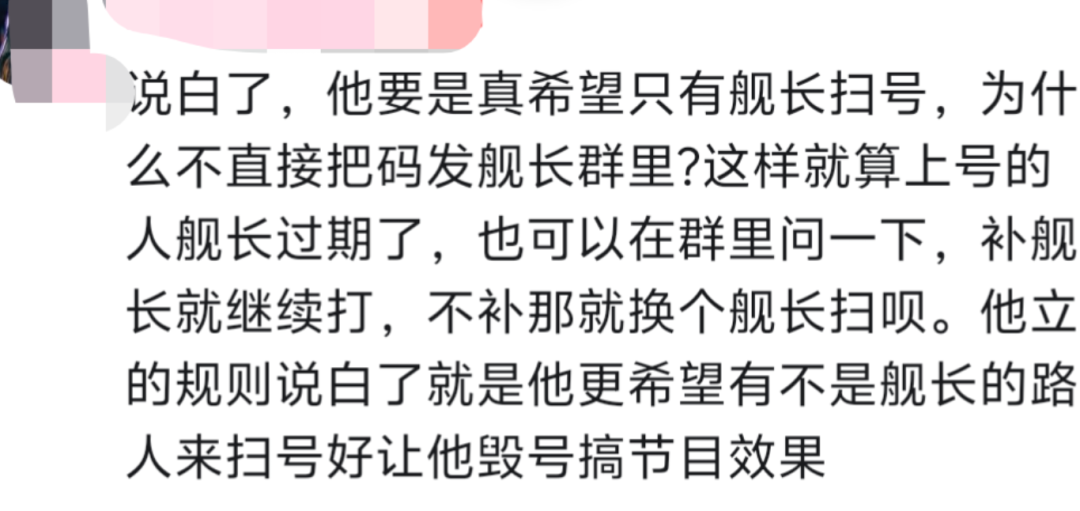 但为了防止非舰长观众乱扫码,他立了个规矩——