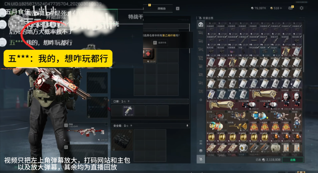 当时主播打得有点红温,受害者本着让博主打爽的想法,配好了装备,给博主扫上了自己的号。