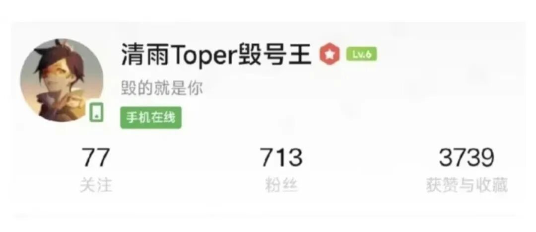 背地里还在其他平台,把自己昵称改成「毁号王」。