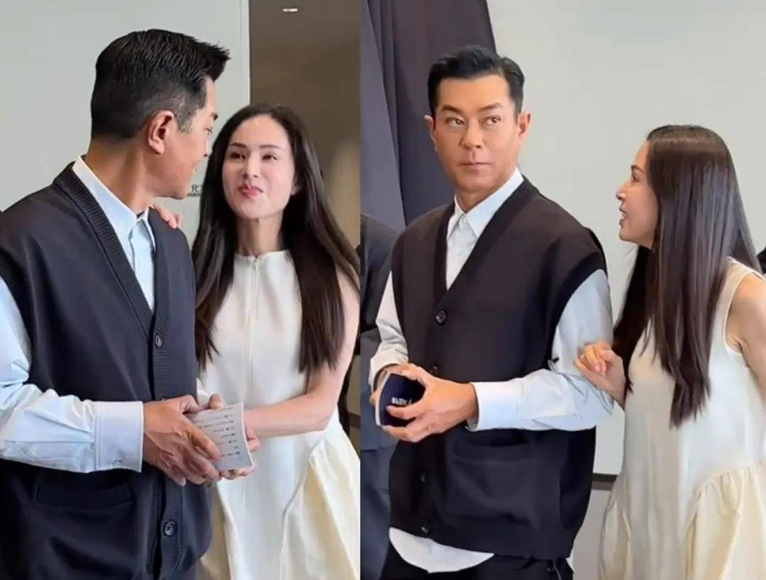 正式上台前两人已经私下相遇,古天乐听到有人叫自己就回头,正巧看到李若彤赶上来,抓住他的手臂,一副小鸟依人的模样。以前两人给观众的感觉是“姑姑跟过儿”,现在成了“小龙女跟怪叔叔”。