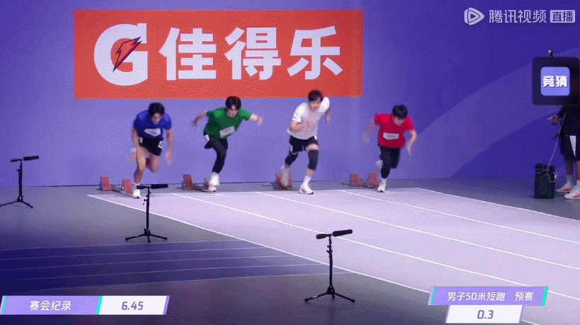陈牧驰跑步是有点东西,肌肉紧绷、高速抬腿摆手,爆发力超强,成绩也非常给力,6.43秒直接打破了6.45秒的赛会记录,给本季节目来了个开门红。