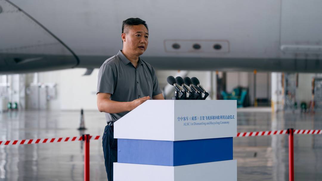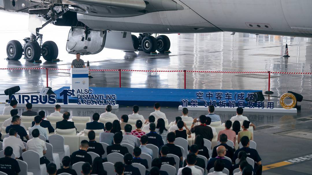 8月29日,“空客飞机全生命周期服务中心首架飞机拆解回收利用项目启动仪式”在成都双流举办, 一架空客A330-200宽体飞机正在拆解。空客全球执行副总裁、空客中国、首席执行官徐岗在现场定下一个目标:比欧洲更高的拆解回收率。