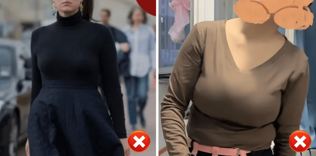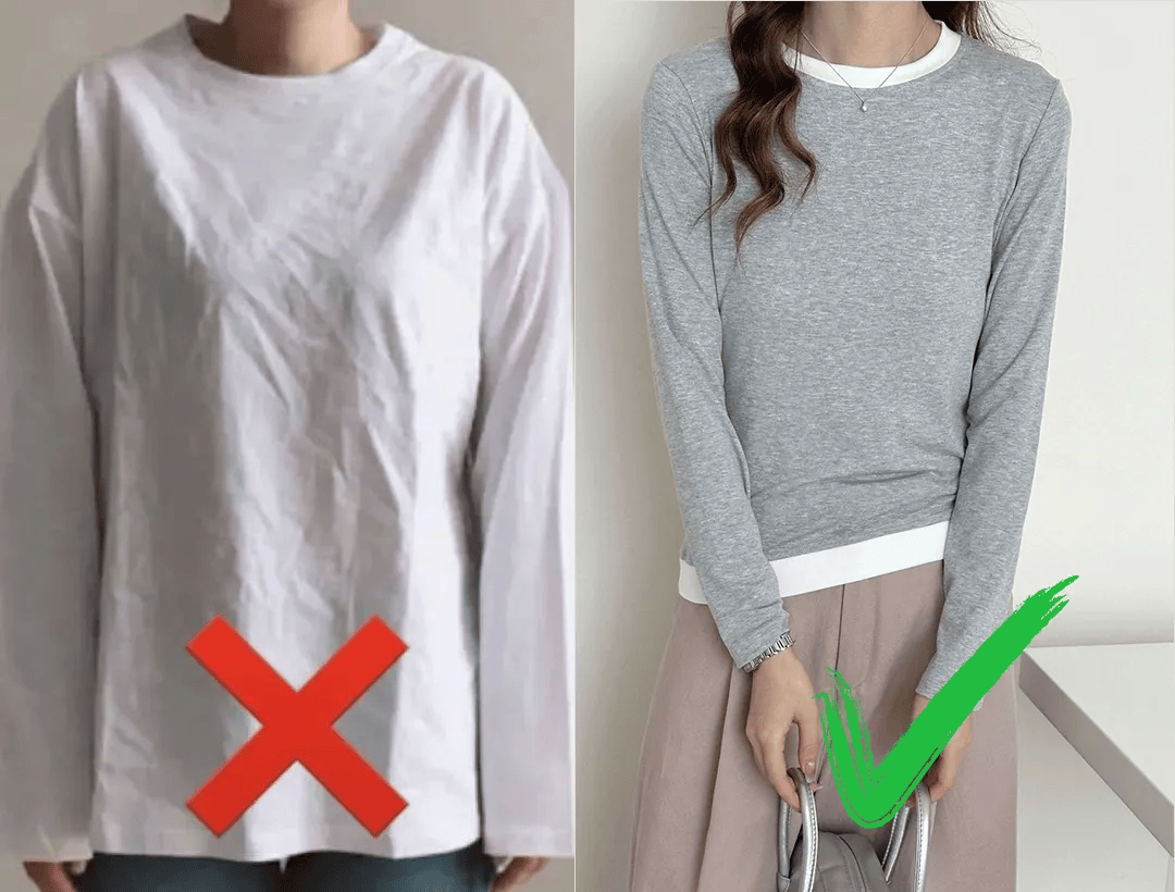 大家发现没,很多打底衫虽说看似差不多,但穿上不是太紧就是太宽: