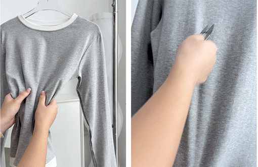 很多便宜的打底衫几乎都会有一个通病——面料不咋地。