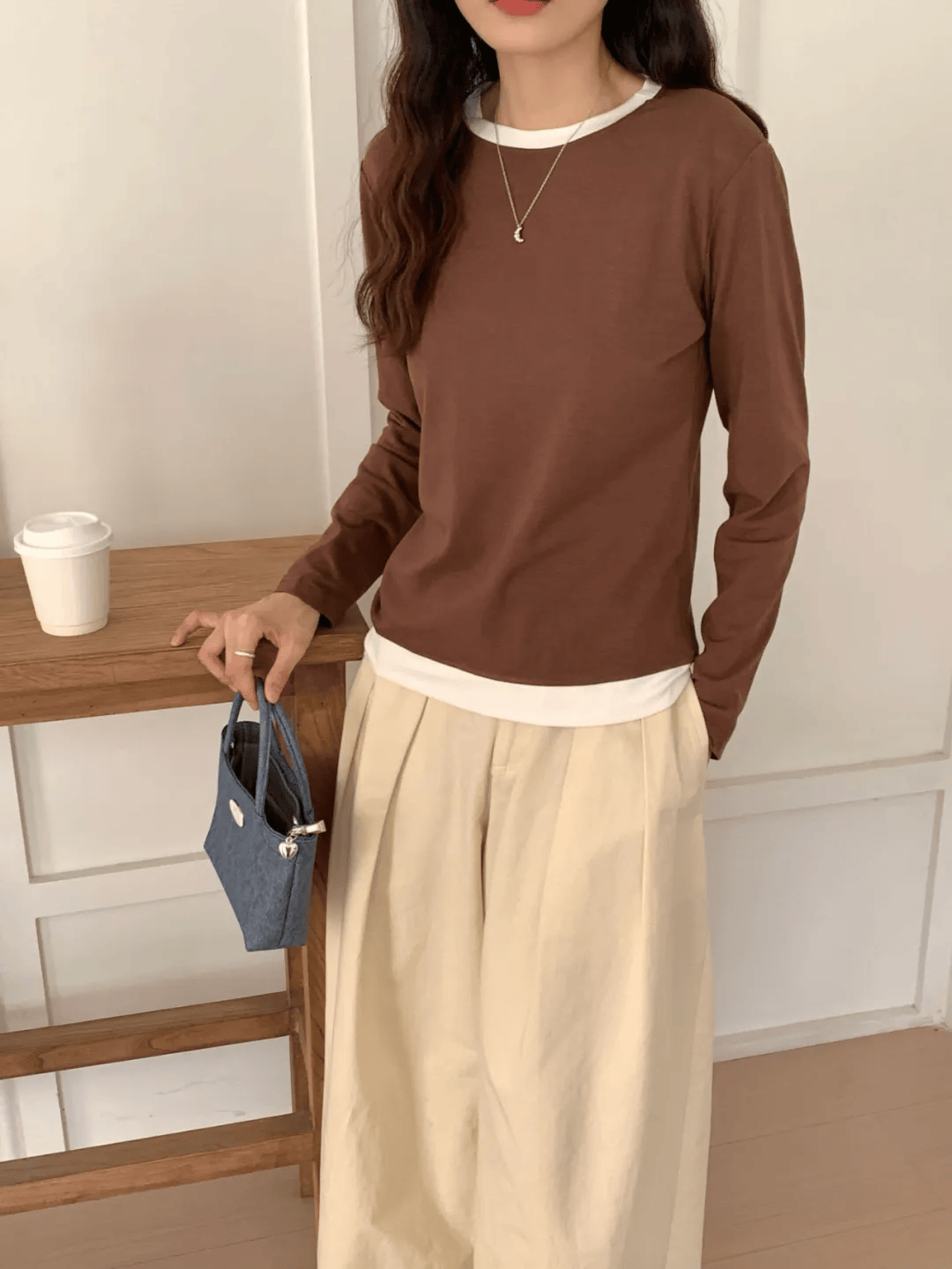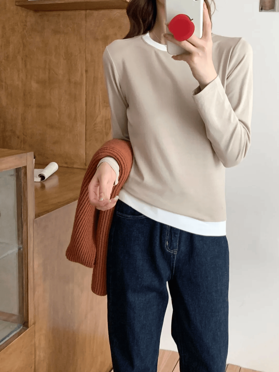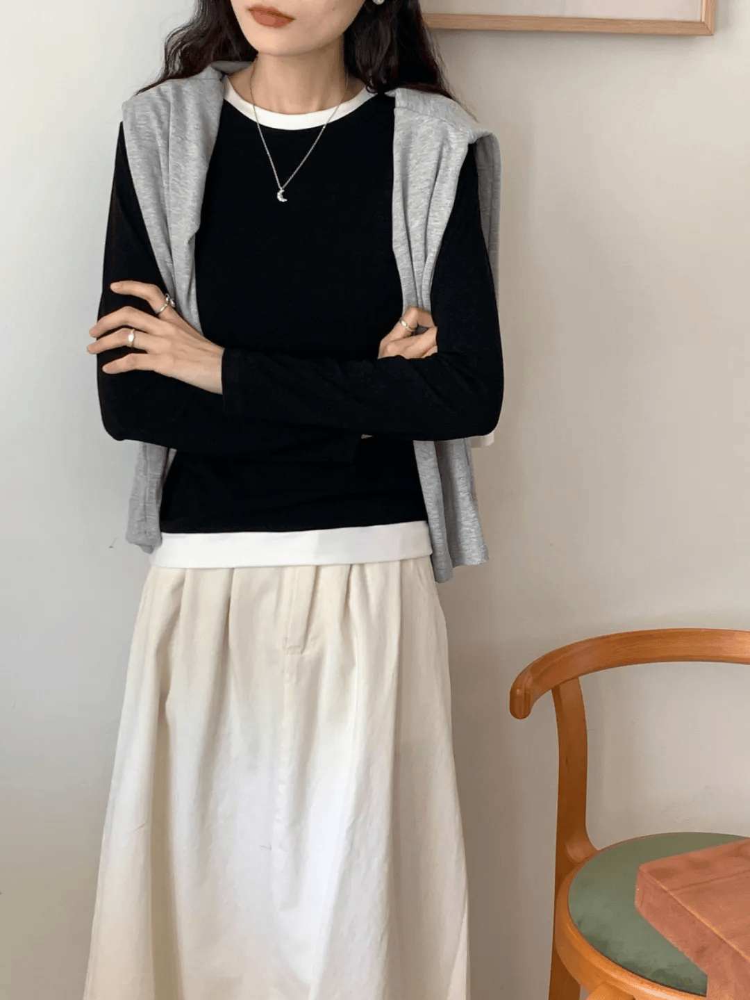这款假两件是我们穿过既好看、版型又嘎嘎正的打底衫。