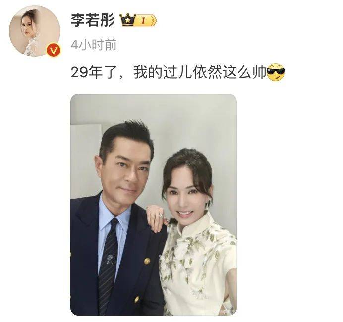 随后,还晒出两人的合照:“29年了,我的过儿依然这么帅。”