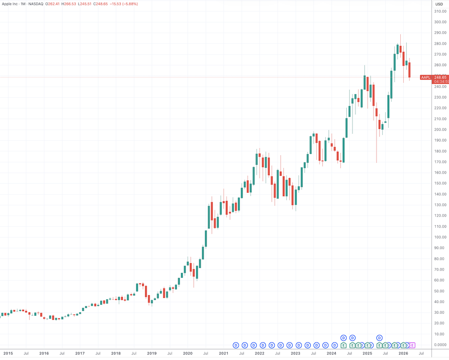(苹果公司去年12月仍在创新高,TradingView)