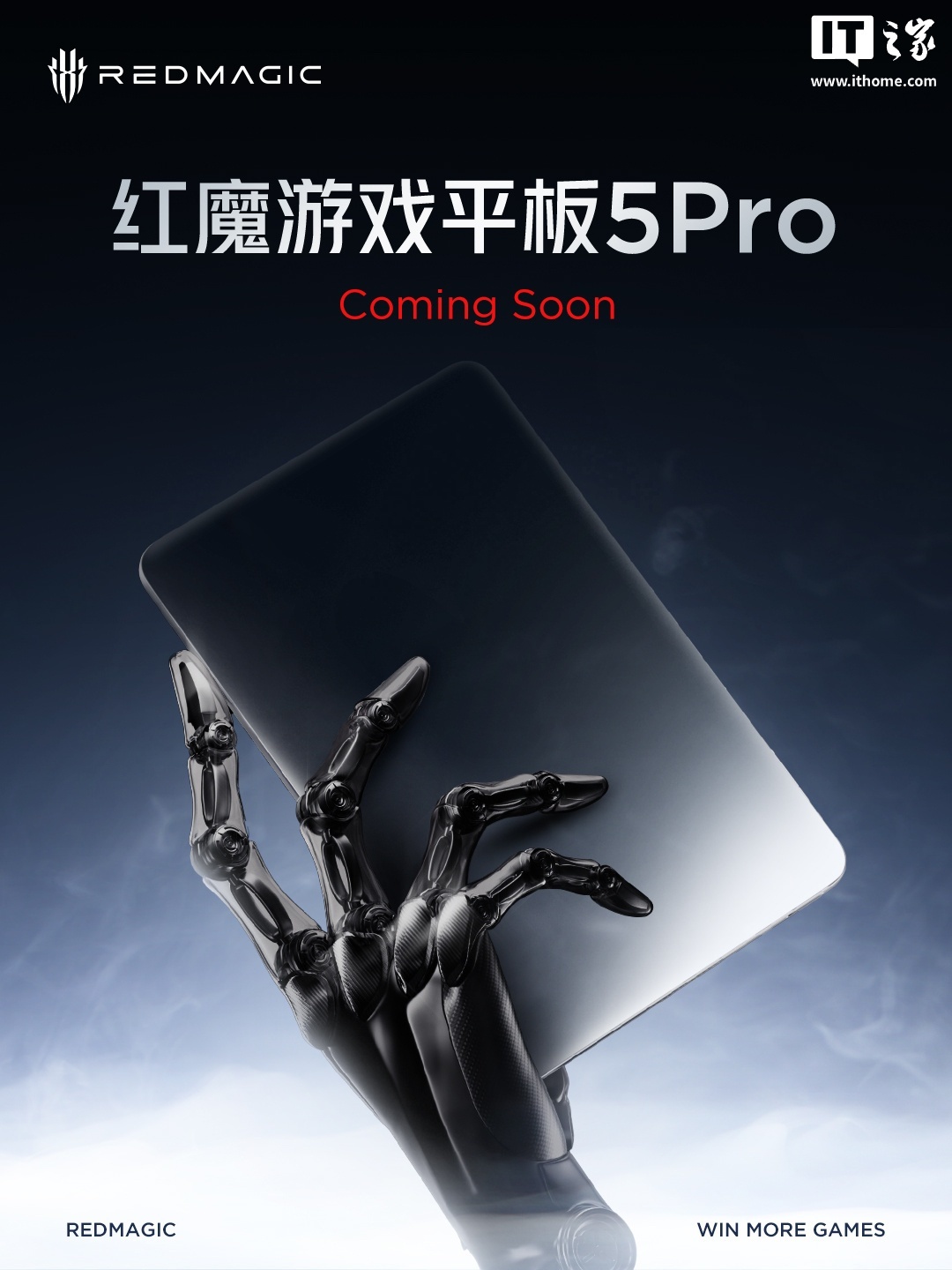 IT之家注意到,红魔游戏平板 5 Pro 已开启前瞻预热,官方表示新机“马上登场”。红魔游戏平板 5 Pro 将搭载 10 大黑科技,具体如下:
