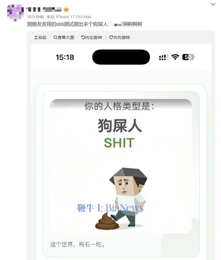 对此,有网友在社交平台分享自己的“SBTI人格”。