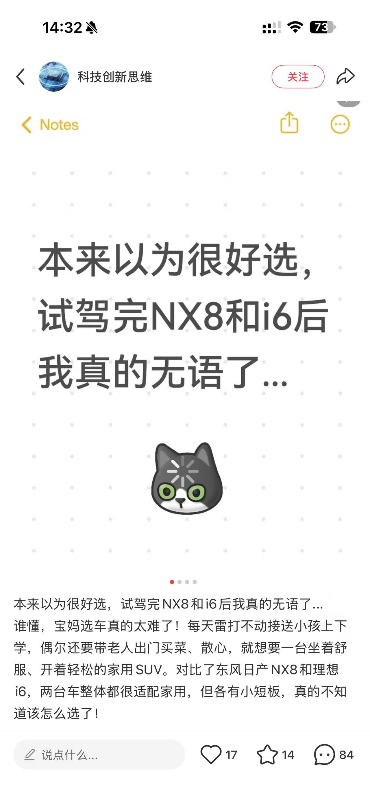 据网络信息,社交媒体平台有博主对比东风日产NX8和理想i6,评论区疑似被NX8水军包围。