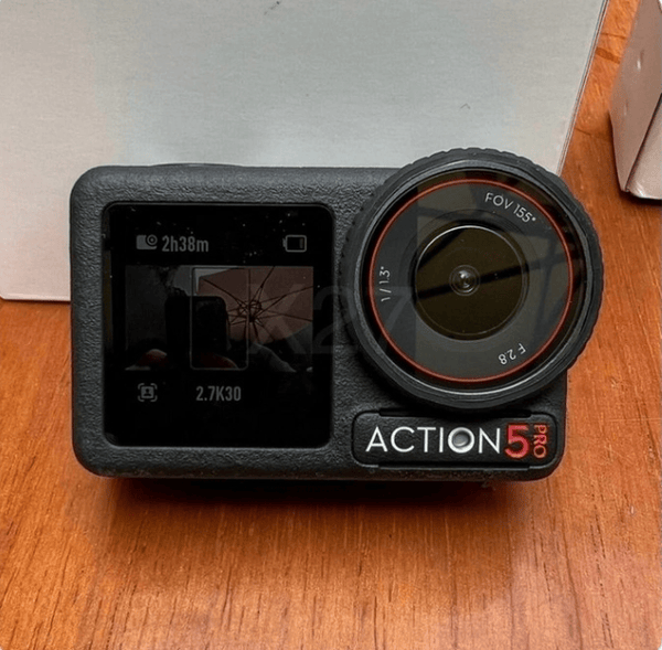 近日,注意到有媒体爆料大疆Osmo Action5 Pro运动相机的照片。根据零售包装盒上的信息,这款运动相机配备了1/1.3英寸CMOS传感器和f/2.8光圈,视场角为155度。