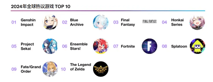 随着国产二游在全球的流行,这种规则也开始渗透国际市场,并加速淘汰旧时代二游建立起来的内容规则。比如前不久推特发布白皮书中就提到,2024年推特全球游戏讨论榜前十当中,有六款为二次元游戏,且第一位和第三位都是国产二游。