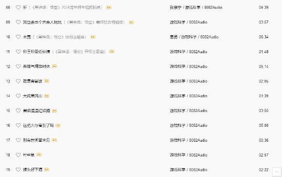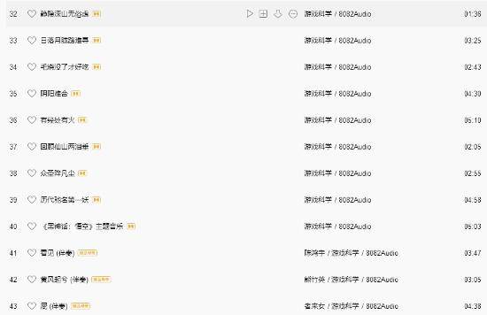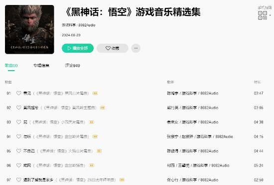 《黑神话:悟空》幕后音频团队8082Audio宣布《黑神话:悟空游戏音乐精选集》所有歌曲已全部上线。