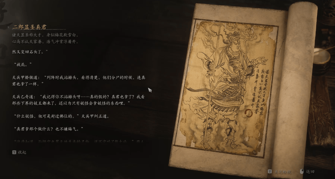 能说道的,只有好结局达成前置,即小西天壁画剧情中我们击败二郎神后,其对话披露出,二郎神与悟空惺惺相惜,且白衣秀士等梅山六怪,皆是二郎神安插在根器持有者妖王座下的卧底。自此二郎神立场完全转换,给我一种擎棒四顾心茫然的感觉。