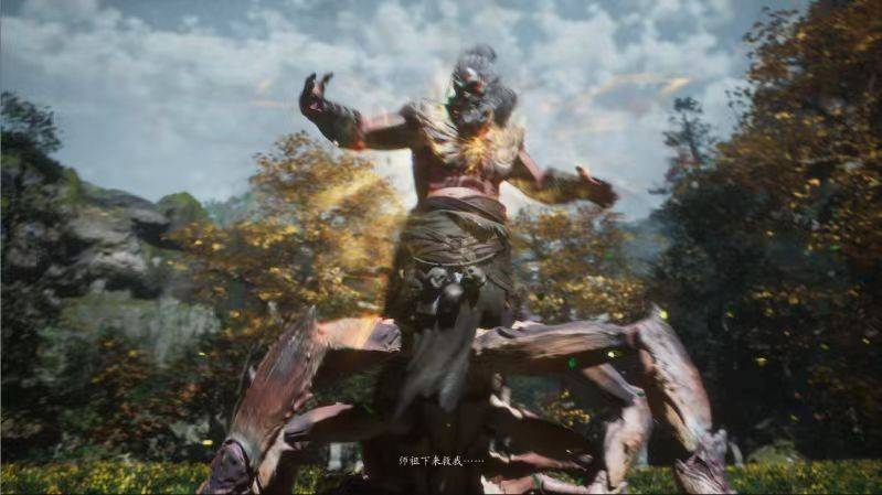最后的大圣残躯和二郎神,有着《黑神话:悟空》中最出色的演出效果。无论是大圣残躯在玩家喝药时使出定身法抢葫芦;还是二郎神一边嘲讽天命人,一边用侧身躲过天命人的四豆蓄力棍,都突出个闲庭信步。