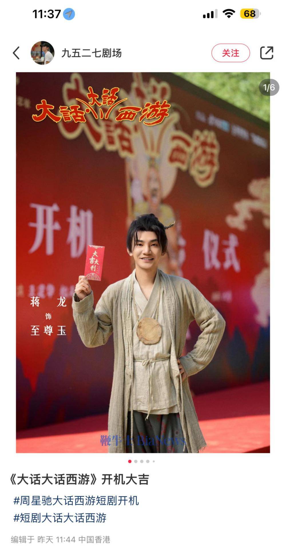 9月3日消息,据「九五二七剧场」消息,旗下首部古装微短剧《大话大话西游》于昨日举行开机仪式。