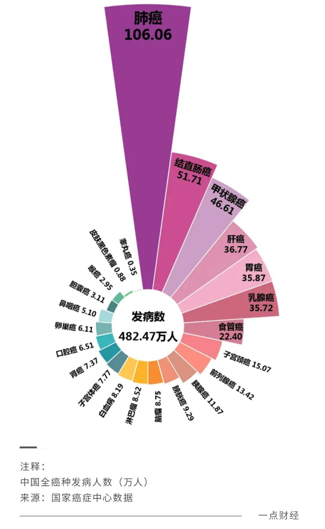中国正成为癌症大国,像天心爸爸这样的癌症病人越来越多。根据国家癌症中心2024年发布的数据,2022年我国癌症新发病例482.47万,排名前五的分别是肺癌(106.06万)、结直肠癌(51.71万)、甲状腺癌(46.61万)、肝癌(36.77万)、胃癌(35.87万)。