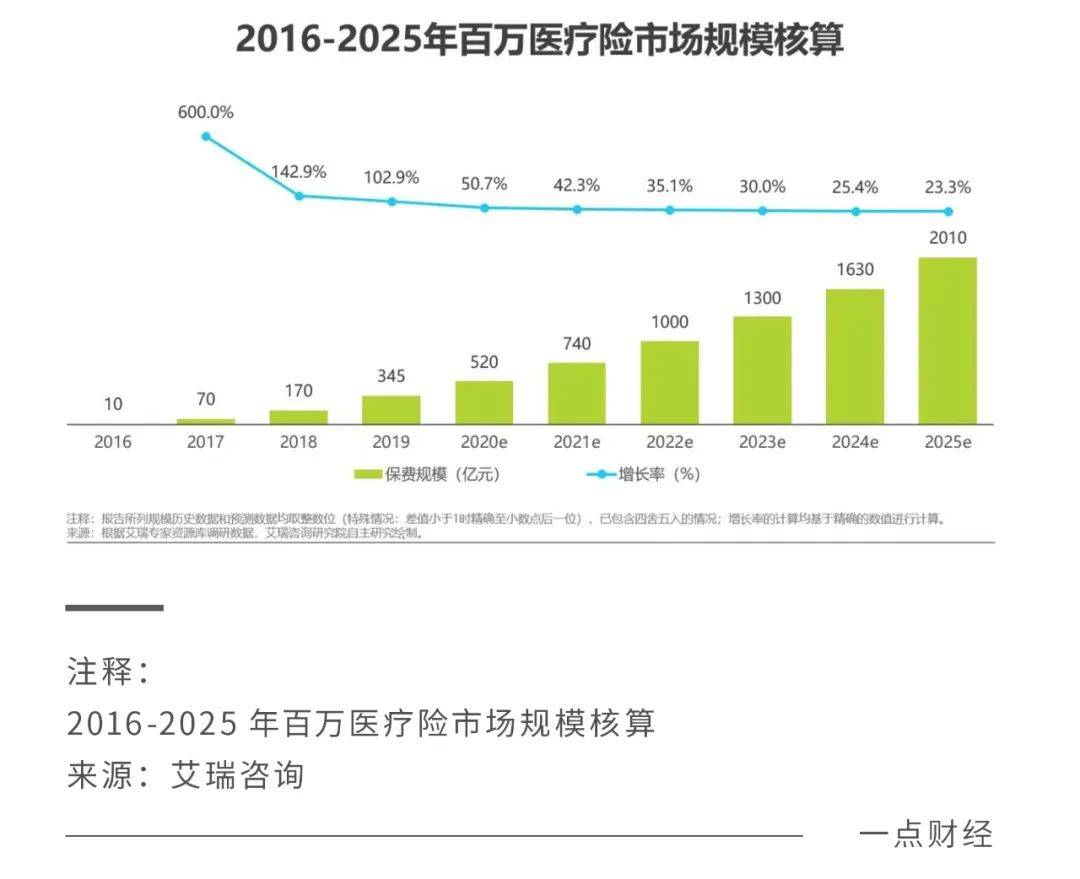 这一特点,让其面世之后迅速火遍全网。根据艾瑞咨询报告,从2016年到2020年,百万医疗险保费规模从10亿元增至520亿元,增长超50倍,异军突起成为商业医疗险中的“主力”之一。