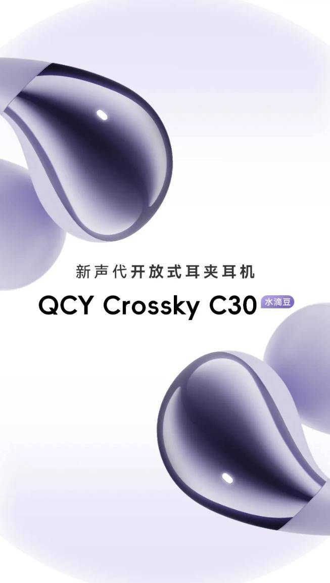 9 月 6 日消息,QCY 旗下新款开放式耳夹耳机Crossky C30 今日正式发售,该耳机采用水滴豆造型设计,支持 360° 空间音效,首发价159 元。