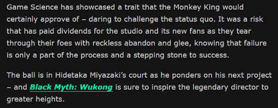 日前,外媒FandomWire发文称赞《黑神话:悟空》“展现了游戏科学在打造游戏体验方面的独到之处,巧妙颠覆了魂游的传统,甚至宫崎英高都尚未做到。”