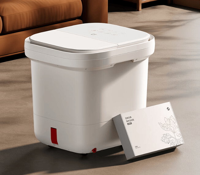 在技术方面,该产品采用了DPS加热器和离心式水泵,能够实现循环加热。桶深40.6cm,支持35℃-48℃调温范围和5-60min定时范围,并内置智能温控技术。此外,在管路中设置有UV杀菌灯,可以避免紫外线直接照射皮肤,在泡脚时边泡边杀菌。